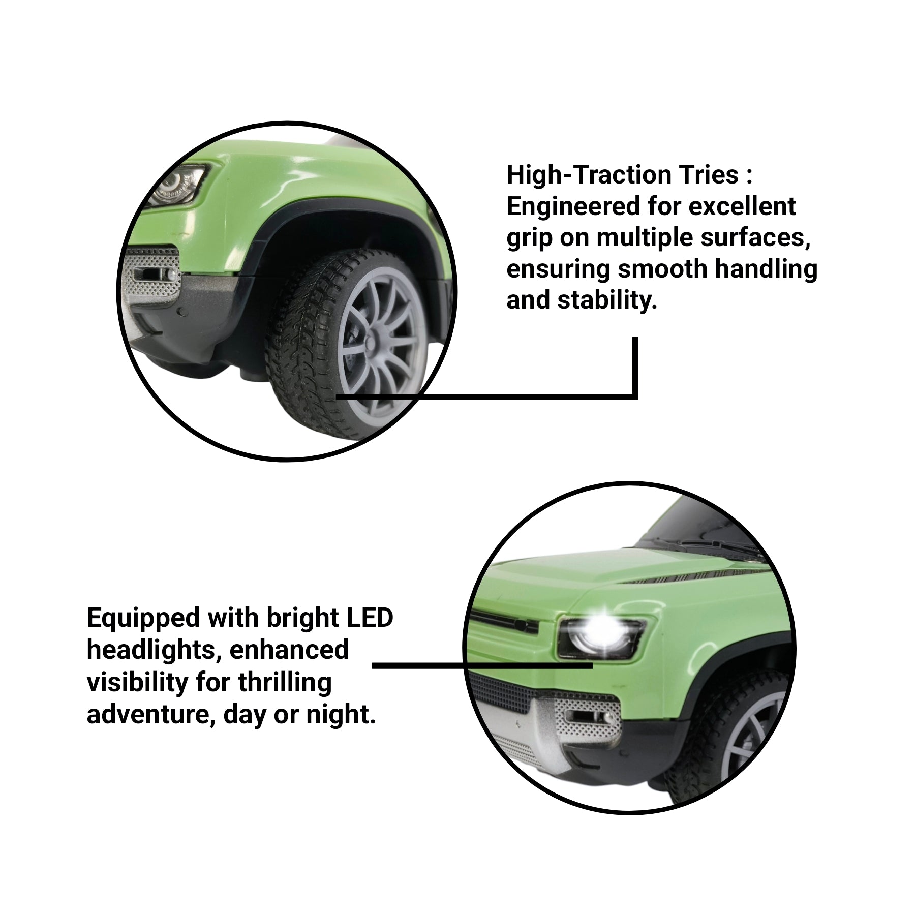 Built for adventure! This RC SUV is designed like the famous Defender. With a tough body, bright lights, and a rechargeable battery, it’s perfect for kids who love rugged vehicles and exploring.
