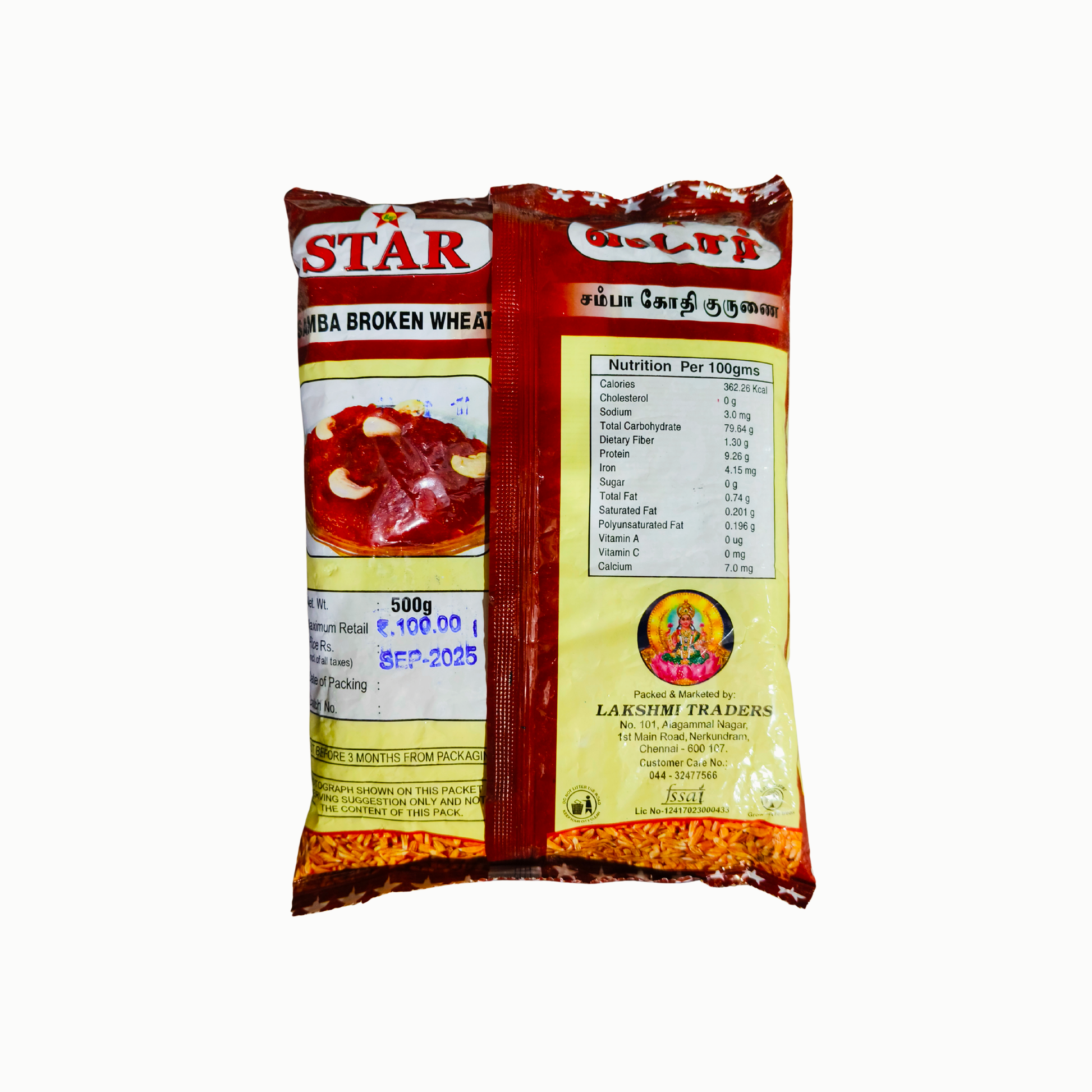 Star Brand Samba Broken Wheat 500g is made from high-quality whole wheat grains, carefully broken to retain natural fiber and nutrients. Itβs a healthy choice for making upma, porridge, khichdi, and other traditional dishes. Rich in fiber and protein, it supports a balanced and nutritious diet.
