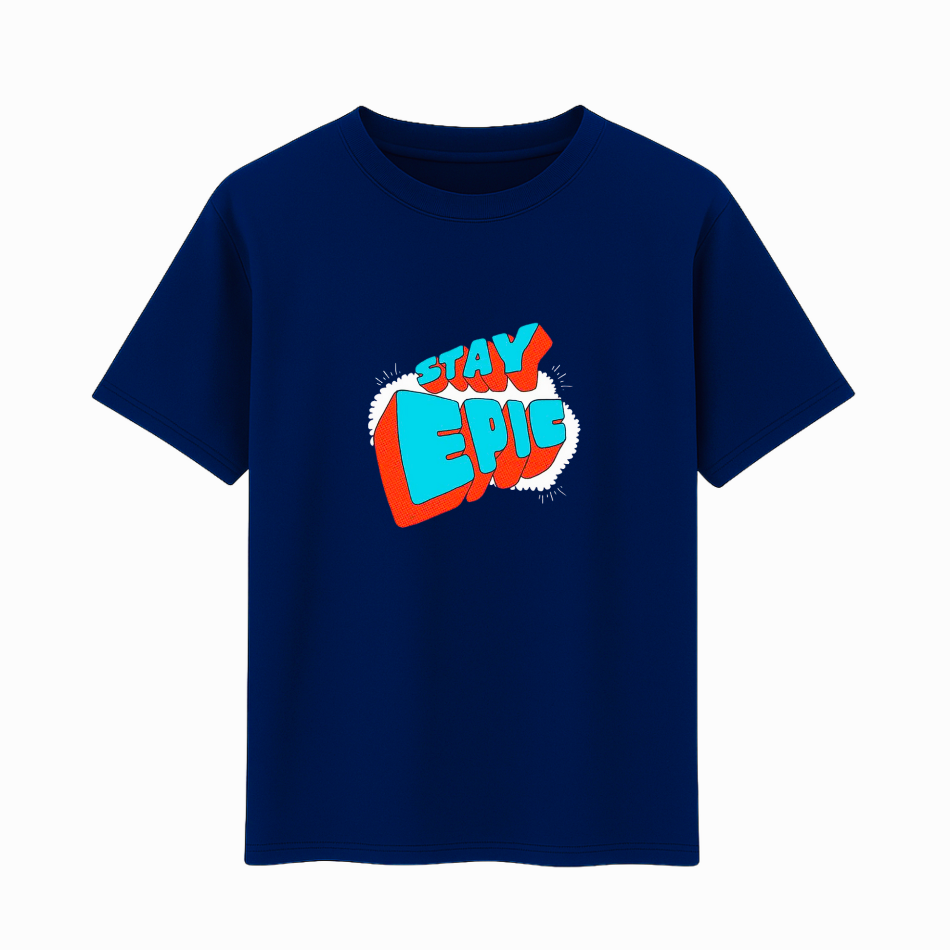 Stay Epic Printed T-Shirt ( Cotton, 180SM, Black & Navy)